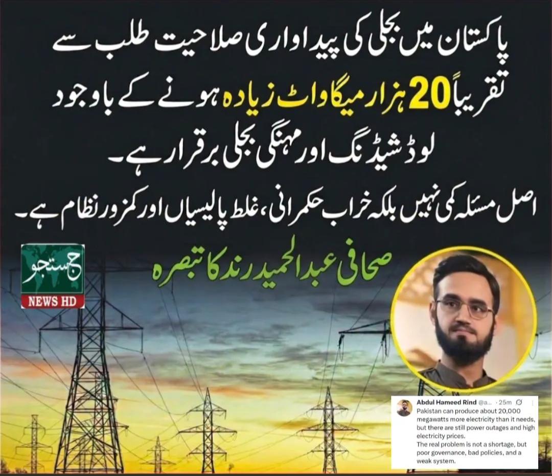 پاکستان کا بجلی بحران پیداوار نہیں، نظام کا مسئلہ ہے صحافی عبد الحمید رند