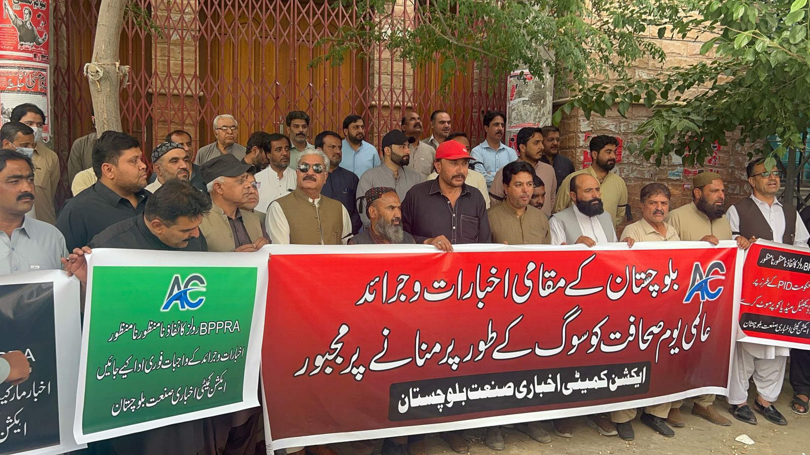 کویٹہ کمیٹی اخباری صنعت بلوچستان کے زیراہتمام آزادی صحافت کے عالمی دن کے موقع پر احتجاجی مظاہرہ کیا