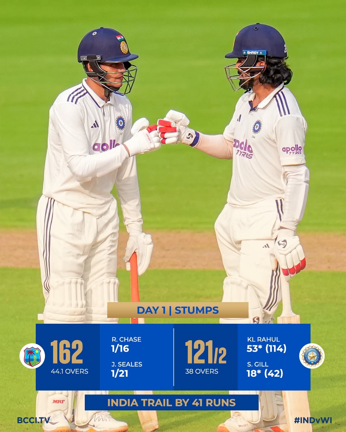 دو ٹیسٹ میچوں کی سیریز کے پہلے ٹیسٹ میچ کے افتتاحی دن بھارت کی میچ پر گرفت مضبوط